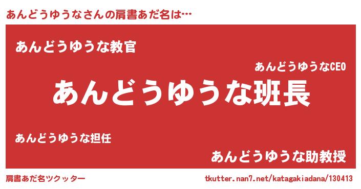 | 意味不明あだ名 | 『とにかく怪しいあんどうゆうな』 |