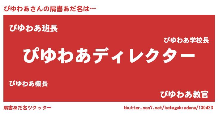 | 意味不明あだ名 | 『とにかく怪しいぴゆわあ』 |