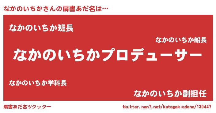 | ヘコむあだ名 | 『なかぷりん』『なかのいちか(笑)』 |