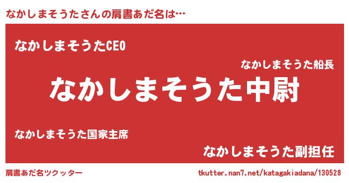 | ヒーロー風カッコイイあだ名 | 『スーパーナカシマソウタ』 |