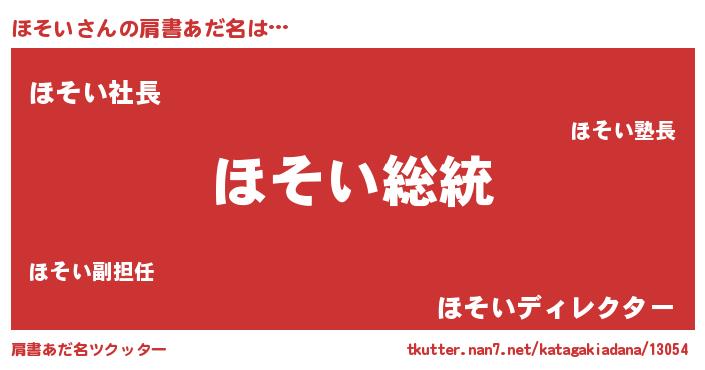 | ヒーロー風カッコイイあだ名 | 『ウルトラ戦士ホソイ』『スーパーホソイ』 |