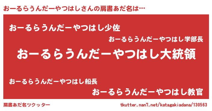 | 伝説のあだ名 | 『最古の忍者おーるらうんだーやつはし』 |