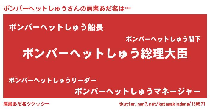 | 意味不明あだ名 | 『ボンバーヘットしゅうフォーエバー』 |
