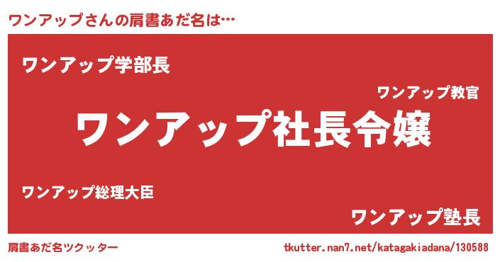 | ヒーロー風カッコイイあだ名 | 『スーパーワンアップ』『炎刃騎士ワン』 |