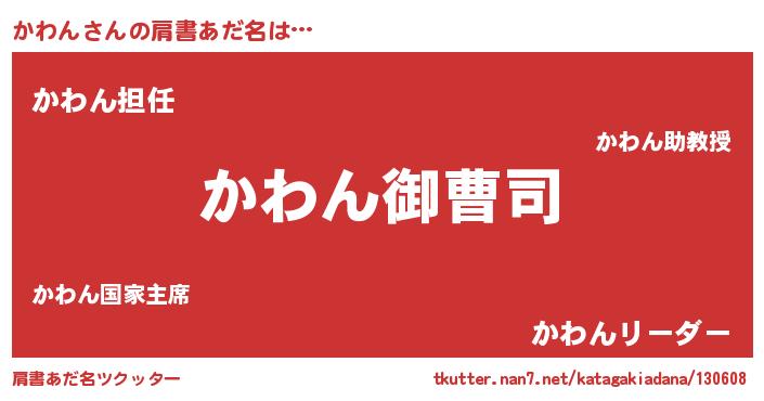 | 男性向けラノベタイトル風あだ名 | 『かわんの憂鬱』 |