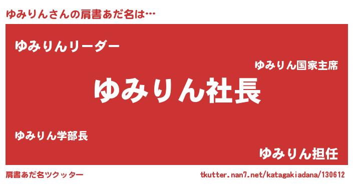 | 女子向けラノベタイトル風あだ名 | 『(仮)ゆみりんのやんごとなき事情』 |