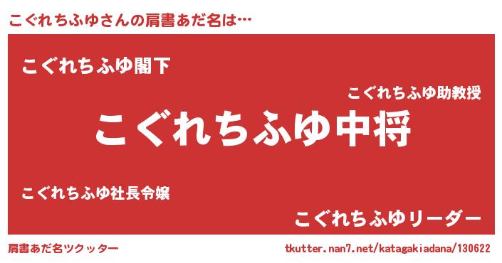 | 男性向けラノベタイトル風あだ名 | 『コグレチフユスレイヤー』 |