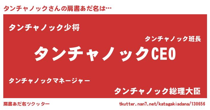 | ポケモン風あだ名 | 『タンチュウ』『タンキング』 |