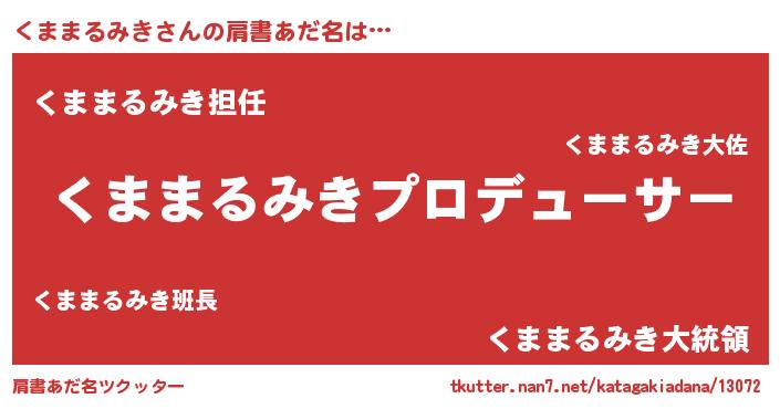 | 胡散臭い通販商品みたいなあだ名 | 『絶対に幸福をもたらす水素水…その名も「くままるみき」』 |