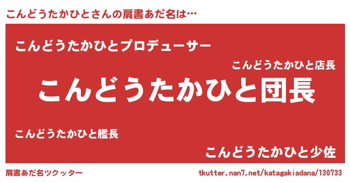 | 料理風あだ名 | 『こんどうたかひとの豆乳スープ』 |
