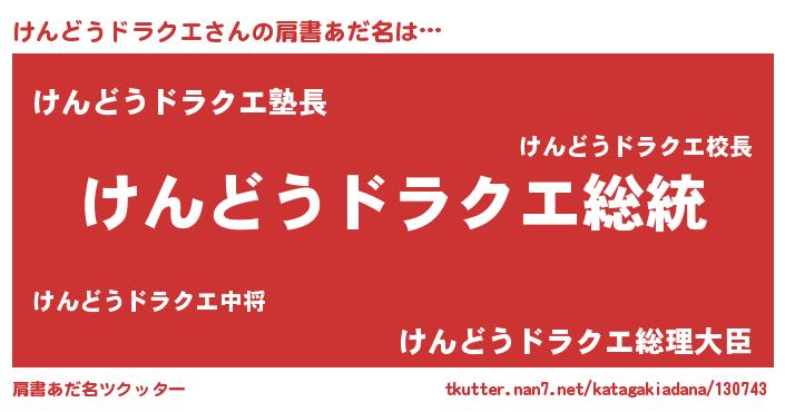 | 意味不明あだ名 | 『自称けんどうドラクエ』 |