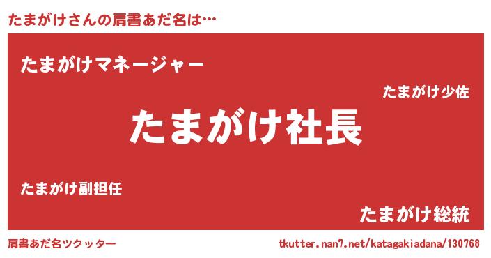 | 意味不明あだ名 | 『ペロリンたまがけ』『自称たまがけ』 |