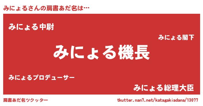 | ヘコむあだ名 | 『なまこ酢』『みににゅー』『みにお』 |