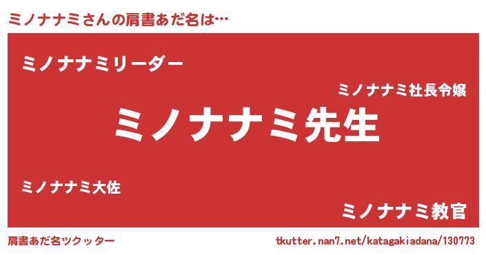 | 男性向けラノベタイトル風あだ名 | 『ミノナナミという概念が存在しない退屈な世界 』 |