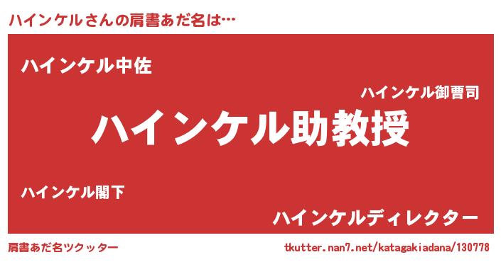 | 欧米人風あだ名 | 『ダニエルハインケル』 |