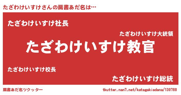| 男性向けラノベタイトル風あだ名 | 『この素晴らしい世界にたざわけいすけを!』 |
