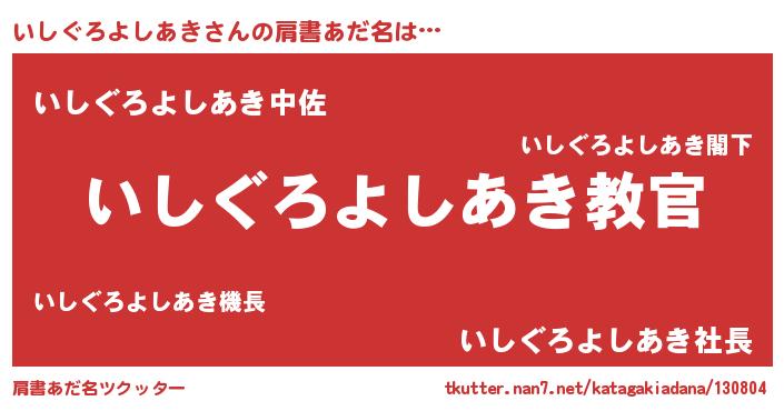 | 男性向けラノベタイトル風あだ名 | 『この素晴らしい世界にいしぐろよしあきを!』 |