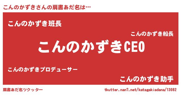| 男性向けラノベタイトル風あだ名 | 『こんのかずきの憂鬱』 |