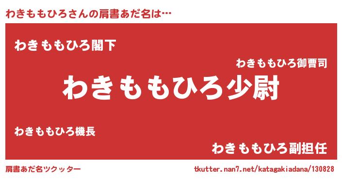 | ヘコむあだ名 | 『わきももひろ(笑)』『わきふぇ~』 |