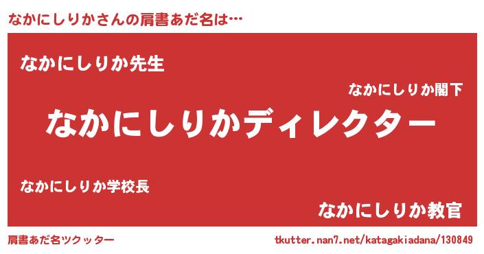 | 意味不明あだ名 | 『永久保存なかにしりか』 |