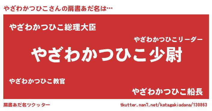 | 女子向けラノベタイトル風あだ名 | 『やざわかつひこの玉の輿計画!』 |