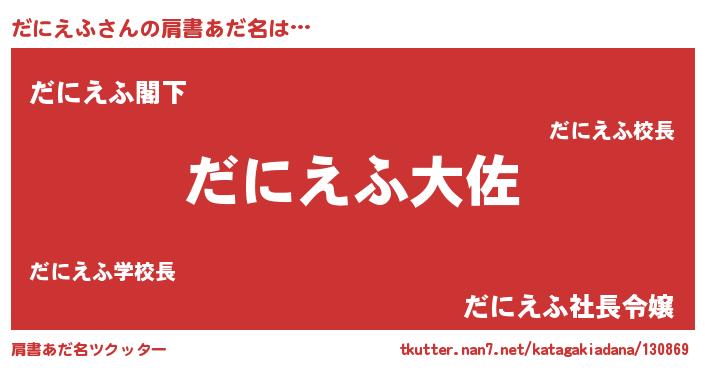 | 意味不明あだ名 | 『つくし科だにえふ属』『自称だにえふ』 |