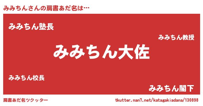 | 胡散臭い通販商品みたいなあだ名 | 『信頼と実績のサプリメント…その名も「みみちん」』 |