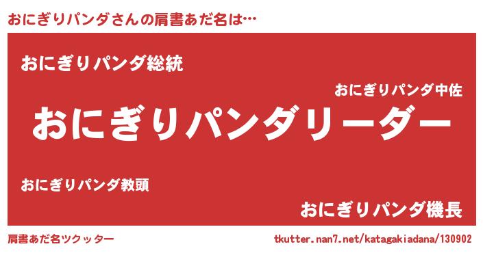 | 欧米人風あだ名 | 『ウサインおにぎりパンダ』 |