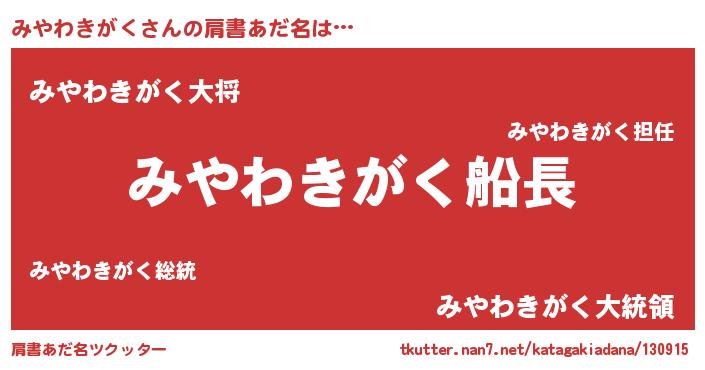 | 欧米人風あだ名 | 『みやわきがく・ステッグマイヤー』 |