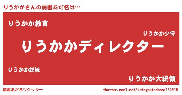 | ヒーロー風カッコイイあだ名 | 『仮面リウダー』『ウルトラりうかかマン』 |