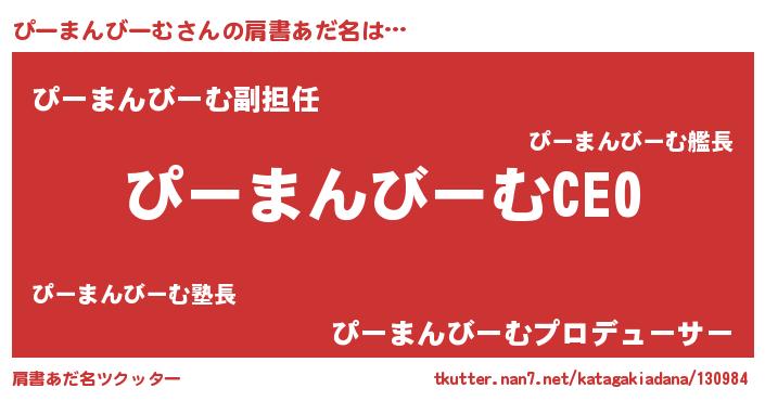 | ヘコむあだ名 | 『ぴーふぇ~』『ぴーまんびーむ(遠い目)』 |