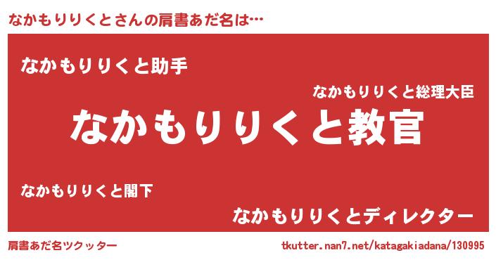 | 意味不明あだ名 | 『住所不定無職なかもりりくと(85歳)』 |