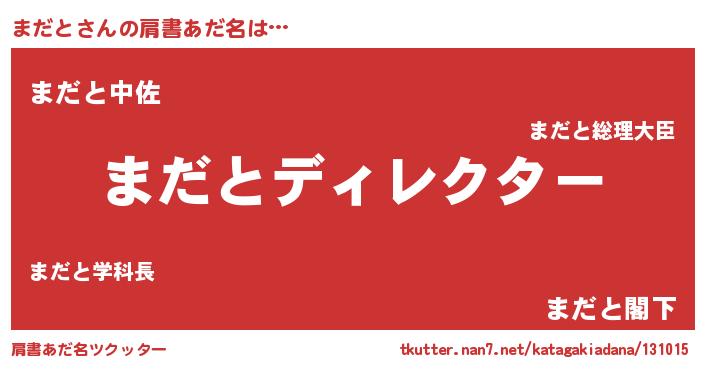 | 男性向けラノベタイトル風あだ名 | 『まだとに滅ぼされるだけの簡単なお仕事です』 |