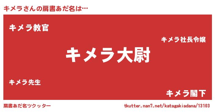 | ヘコむあだ名 | 『キメにゅー』『キメラ(爆)』 |