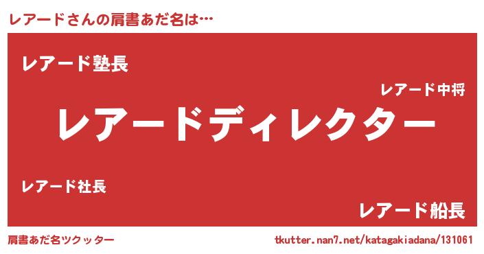 | 男性向けラノベタイトル風あだ名 | 『レアードに滅ぼされるだけの簡単なお仕事です』 |