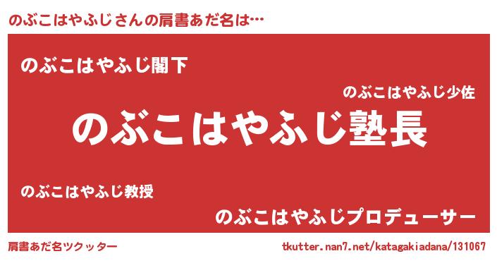 | 男性向けラノベタイトル風あだ名 | 『のぶこはやふじの嫁は女の子じゃないと思った?』 |