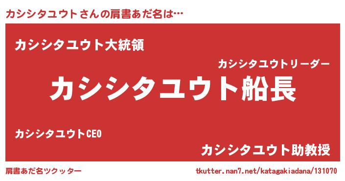 | 男性向けラノベタイトル風あだ名 | 『うちのカシシタユウトが世界を掌握している!』 |