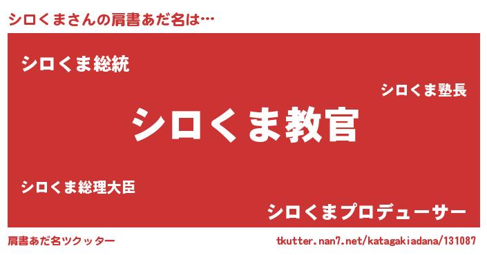 | ヒーロー風カッコイイあだ名 | 『仮面シロダー』『最強戦士シロクマ』 |