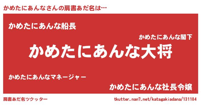 | 胡散臭い通販商品みたいなあだ名 | 『モテモテ間違いなし霊験あらたかなお札…その名も「かめたにあんな」』 |