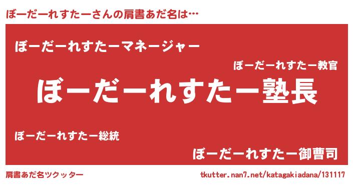 | 意味不明あだ名 | 『とにかく怪しいぼーだーれすたー』 |