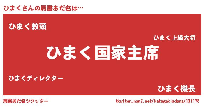 | ファンタジー風あだ名 | 『エターナルヒマクー』『ヒマディッシュ』 |