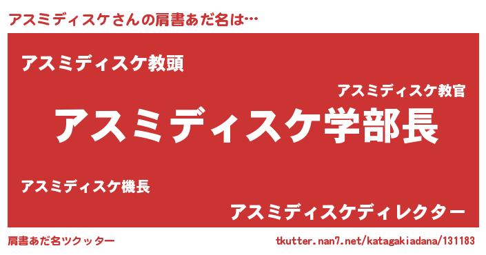 | ヘコむあだ名 | 『アスミディスケ(遠い目)』『豆乳』 |