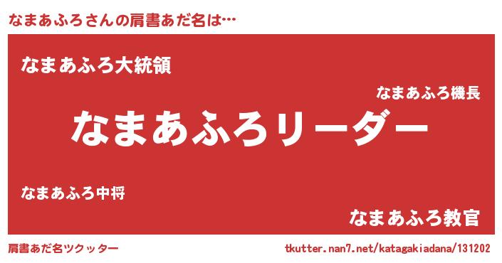 | 欧米人風あだ名 | 『ウサインなまあふろ』 |