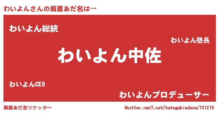 | ヘコむあだ名 | 『わいお』『わいっふぃ~』 |