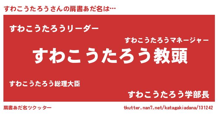 | ヘコむあだ名 | 『すわこうたろう(笑)』『すわっちょ』 |