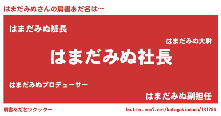 | ヒーロー風カッコイイあだ名 | 『スーパーハマダミヌ』『天弓騎士ハマ』 |