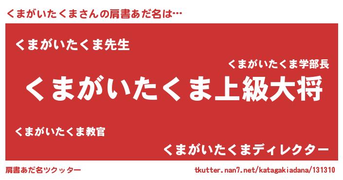 | ヒーロー風カッコイイあだ名 | 『ネオクマガイタクマ』『仮面クマダー』 |