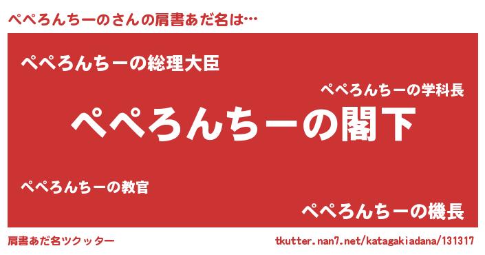| 伝説のあだ名 | 『最強の忍者ぺぺろんちーの』 |
