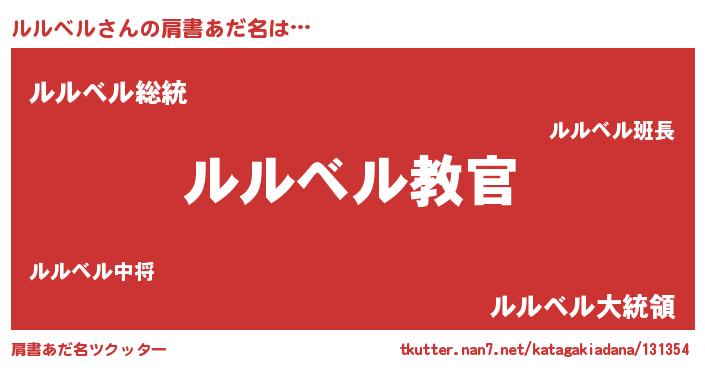 | ヒーロー風カッコイイあだ名 | 『仮面ルルダー』『最強戦士ルルベル』 |