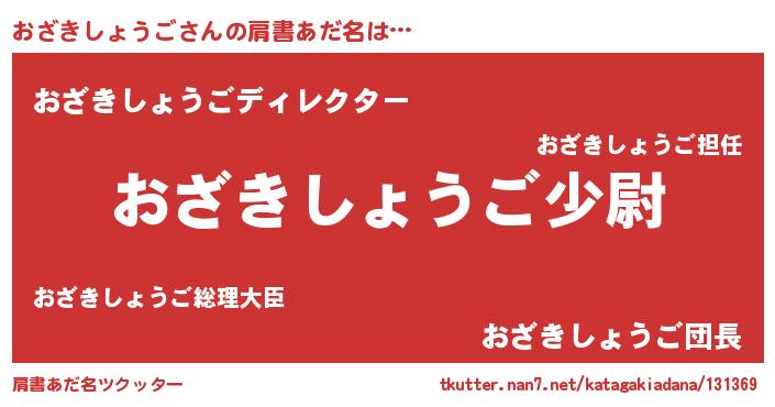 | 男性向けラノベタイトル風あだ名 | 『おざきしょうご~年齢イコール彼女いない歴の魔法使い~』 |